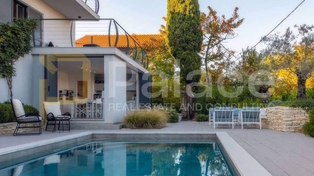 Villa, die alle Erwartungen übertrifft: Oase mit Pool, Sommerküche und Apartment Auf der Insel Krk, einer der schönsten kroatischen Inseln, die für ihre natürliche Schönheit und reiche Geschichte bekannt ist, befindet sich eine luxuriöse Villa, die eine perfekte Kombination aus moderner Architektur und höchstem Komfort darstellt.