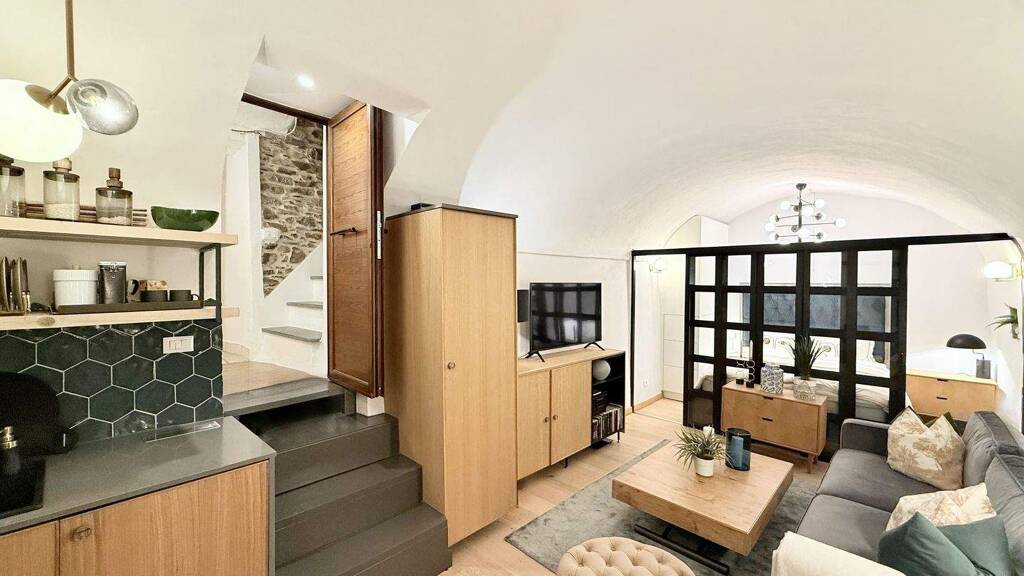 Im Herzen der romantischen Altstadt von Dolceacqua, umgeben von ihren verwinkelten Gassen und der mediterranen Atmosphäre, befindet sich dieses außergewöhnlich geschmackvoll renovierte Studio-Apartment in einem typisch ligurischen Natursteinhaus.