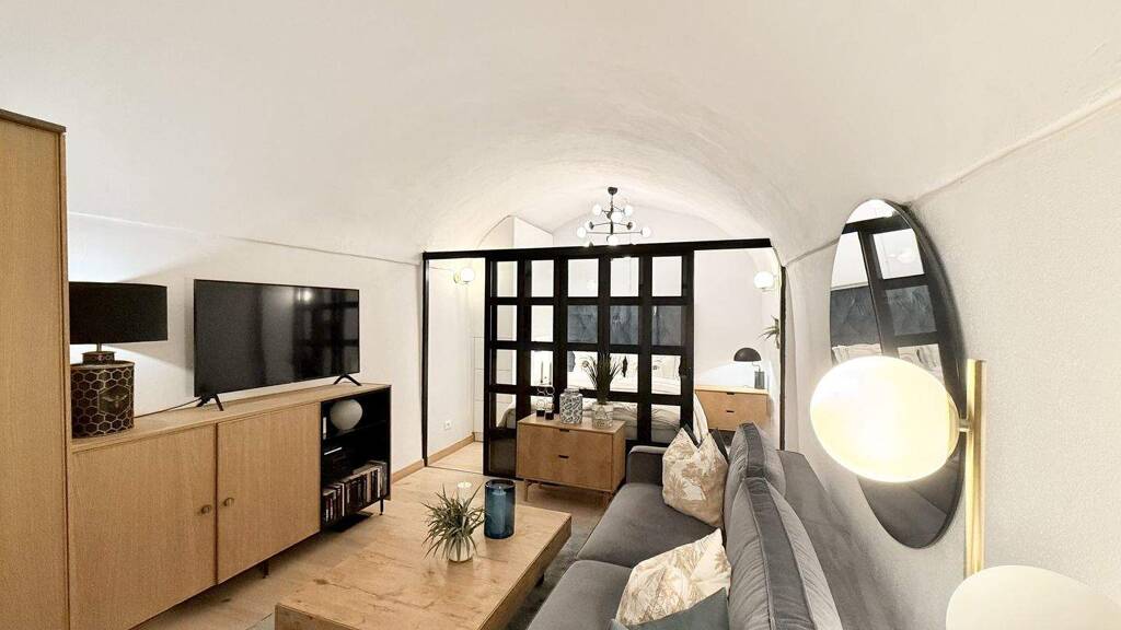 Die Einheit liegt im 2. Obergeschoss und ist über ein sehr gepflegtes, erst kürzlich renoviertes Treppenhaus erreichbar. Mit ca. 33 m² Wohnfläche präsentiert es sich als echtes Raumwunder mit besonderem Charme. Bereits beim Betreten wird deutlich, mit welcher Sorgfalt und gestalterischen Raffinesse die Modernisierung (2020) umgesetzt wurde: Jeder Quadratmeter wurde optimal genutzt, sodass ein harmonisches, fließendes Raumkonzept entstanden ist, das Ästhetik und Funktionalität perfekt vereint. Ein paar Stufen führen vom Eingang in den offenen Hauptraum, der durch charakteristische Rundbögen eine besondere architektonische Note erhält. Hier finden Wohnen, Schlafen und Kochen ihren Platz in einem stimmigen, durchdachten Gesamtbild: Links öffnet sich der gemütliche Wohnbereich, während sich im hinteren Teil der Schlafbereich befindet, der bei Bedarf durch eine moderne Glaswand mit Schiebetüren elegant abgetrennt werden kann – eine stilvolle Lösung, die Offenheit und Privatsphäre gleichermaßen ermöglicht. Rechts ist die Küche integriert, klar strukturiert und mit allen wesentlichen Funktionen auf kompaktem Raum. Das großzügige, hochwertig gestaltete Duschbad ist über eine Schiebetür im industriellen Stil zugänglich und überzeugt durch Komfort und Materialqualität. Ein kleiner Balkon (ca. 2 m²) rundet das Angebot ab und bietet einen stimmungsvollen Platz, um das Leben der Altstadt aus nächster Nähe zu genießen.
