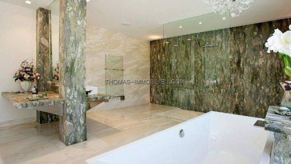 High-Class Villa der Superlative nahe Port Adriano. Eine Vollendung an Design, Stil, Qualität und Funktion. Aus allerbesten Materialien und Baustoffen wurde dieses neuwertige, fantastische Haus erbaut. Über drei Ebenen erstreckt sich eine grossdimensionierte Wohnlandschaft mit fünf Schlafräumen (vier davon mit Bad en Suite). Das Haus ist nach Süden ausgerichtet und eröffnet einen herrlichen Meerblick. In der Kelleretage befindet sich eine riesige Garage (Platz für 5 Autos) sowie zusätzliche Räume, welche sich für ein Heimkino oder für Partys perfekt eignen. Alle 3 Etagen sind sowohl durch Treppen als auch durch einen geräumigen Aufzug miteinander verbunden. Im tropisch angelegten Gartenbereich erwartet Sie ein wunderschön designter und beheizbarer Aussenpool, ein extra Fitnessbereich mit Sauna & Duschen, als auch eine exklusive, überdachte Sommerküche. Diese Prestige-Villa ist durch die intelligente und hochwertige Bauweise (wie z.B. volle Nutzung der Solarenergie, sehr speziell isolierte grosse Glasfronten, Stahl-Beton-Elemente) ein modernstes Beispiel an maximaler Energiespartechnik. Ein architektonisches Meisterstück. Der Innen-und Aussenbereich des Hauses lässt sich über neuwertigste und hochmoderne Technik bedienen ( via Computersystem, Domotic-System, Überwachung und Alarm). Alle Bereiche lassen sich elektronisch steuern und kontrollieren. Das Interieur stellt eine harmonische Komposition aus edelstem Design, Stilelementen und Farbnuancen dar. Eine wahre Augenweide! Diese Villa gleicht einer traumhaften Oase des Wohnens - einem begehbaren Kunstwerk des 21. Jahrhunderts. Ein Muss! fuer Jeden der das Aussergewöhnliche und das absolut Einmalige zu schätzen weiß. - Parken: Garage - Garten: Tropischer Garten - Ausrichtung: Süden - 2 Parkplätze - 5-10 Minuten zum Golfplatz - 5 Minuten zu den Geschäften - Alarmanlage - Autom. Türöffner - Grill - Keller - Qualitätsbau - Überwachungssystem - Klimalitfenster - Alle Freizeiteinrichtungen in - Eingerichtete Küche - Esszimmer - Dopperlverglasung - Ankleidezimmer - Elektrisch angetriebene Tore - Badezimmer en suite - Erstklassiger Zustand - Exklusives Bauprojekt - Offener Kamin - Fußbodenheizung - Voller Charakter - Garage - Garten - Fitnessraum - Beheizter Außenpool - Intelligentes System - Whirlpool - Landschaftsgärten - Großer Lagerraum - Aufzug - Wohnzimmer mit Kamin - Luxus-Einbauten - Marmorböden - Moderner Stil - Neubau - Pool - Luxuriöse Einbauküche - Anwesen mit viel Prestige - Privater Pool - Hochwertige Residenz - Ruhige Lage - Sicher - SAT TV - Sauna - Solarheizung - Solarzellen - Pool: Privat - Küche: Eingerichtete Küche