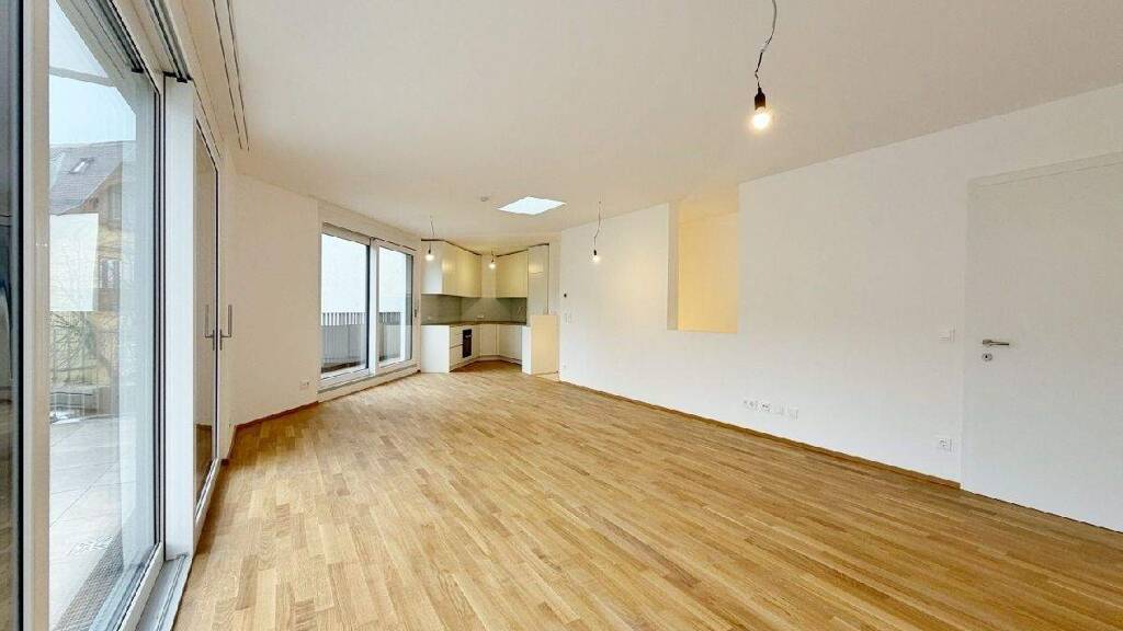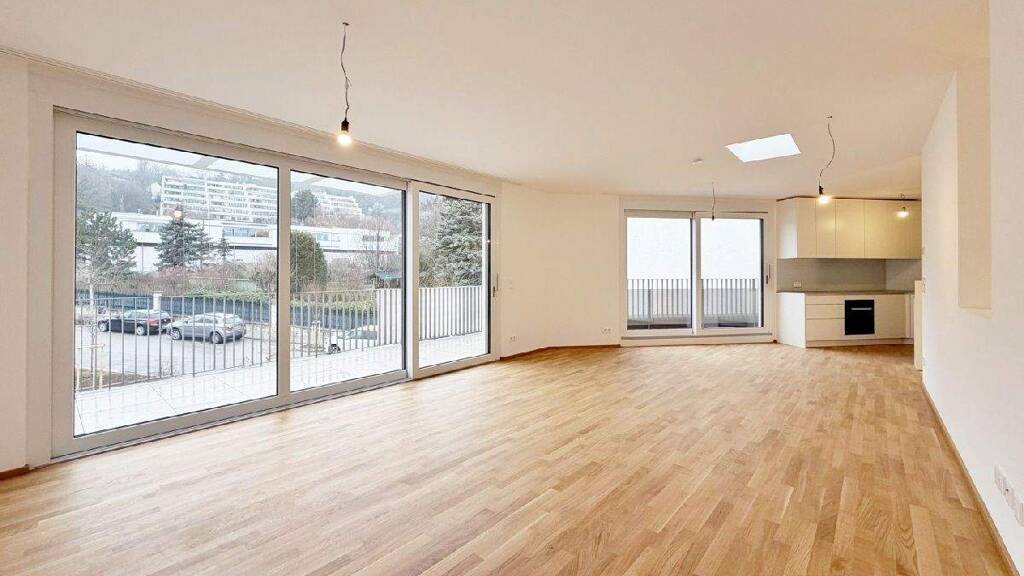 *Ausstattungshighlights*: Designerküchen von EWE mit hochwertigen Miele-Geräten - Grifflose Küche mit Unterschränken und raumhohen Oberschränken mit Schattenfuge - Slowmotion-Schubladen und eingefrästes LED-Band über die gesamte Länge - Weiße Küchenfront mit Anti-Fingerprint-Beschichtung - Dünne graue Schichtstoff-Arbeitsplatte - Miele-Geräte: Herd, Dunstabzug, Geschirrspüler, Gefrier-Kühl-Kombination Klimaanlage in den Maisonette-Wohnungen Feinsteinzeug-Fliesen (30x60 cm) und Eiche-Natur-Parkettböden Terrassen mit elegantem Feinsteinzeugbelag elektrische Außenrollläden Video-Gegensprechanlage exklusive Sanitäranlagen der Marke Laufen und Armaturen von Hansgrohe Luftwärmepumpe / Fußbodenheizung mit Kühlfunktion 9 Parkplätze verfügbar, welche um € 120 inkl. BK und USt. angemietet werden können.