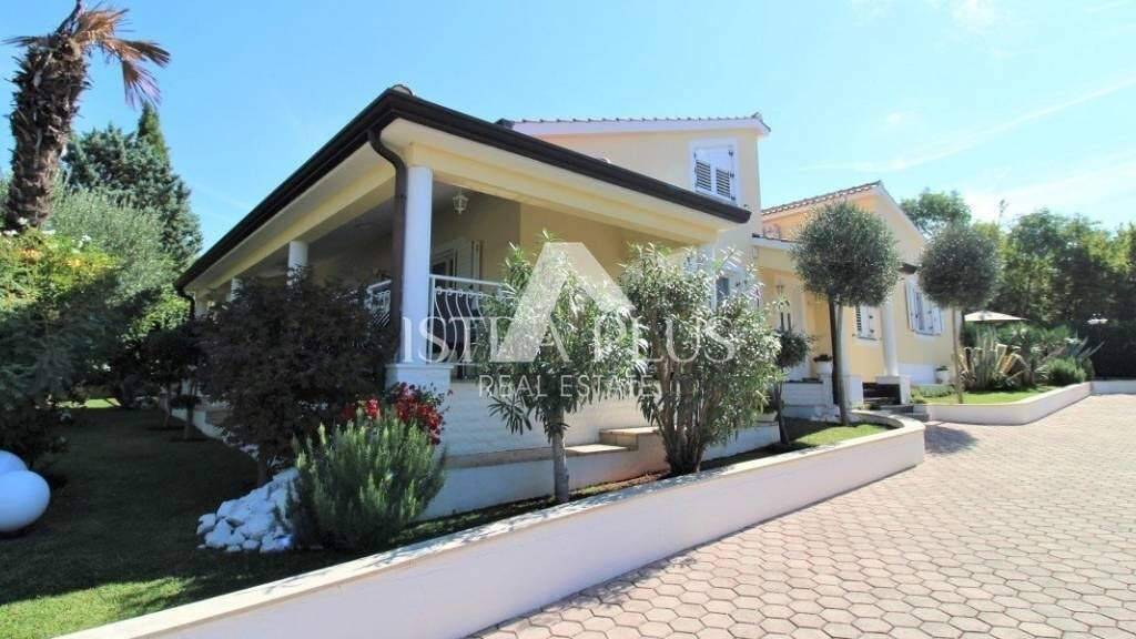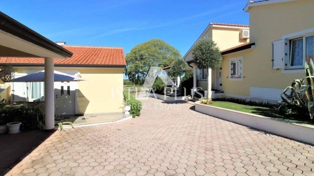 Zehn Autominuten von Porec und dem Meer entfernt befindet sich dieses schöne Anwesen auf einem landschaftlich gestalteten Grundstück von 1.465 m2 (das eigentlich aus zwei Baugrundstücken besteht).