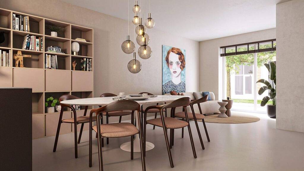 fifty properties will go on sale in phase 1 of the oosterlingen. one of these properties is a detached townhouse with 160 m2 of living space. it occupies the ground, first and second floors of het huis (the home). there is a large dining kitchen on the ground floor and a big sitting room on the first floor, which could be used as an extra study or bedroom instead. on the second floor, there are three good-sized bedrooms and a large bathroom. this property is unique because of its two outdoor spaces: a patio on the first floor, which is accessed via the living room, and a spacious, private roof terrace of 16 m2, separated from the neighbours by plant-filled containers. this is a safe space for the children to play outside in when the weather is good and it's ideal for outdoor dining as well. het huis is a sustainable wood+ structure.