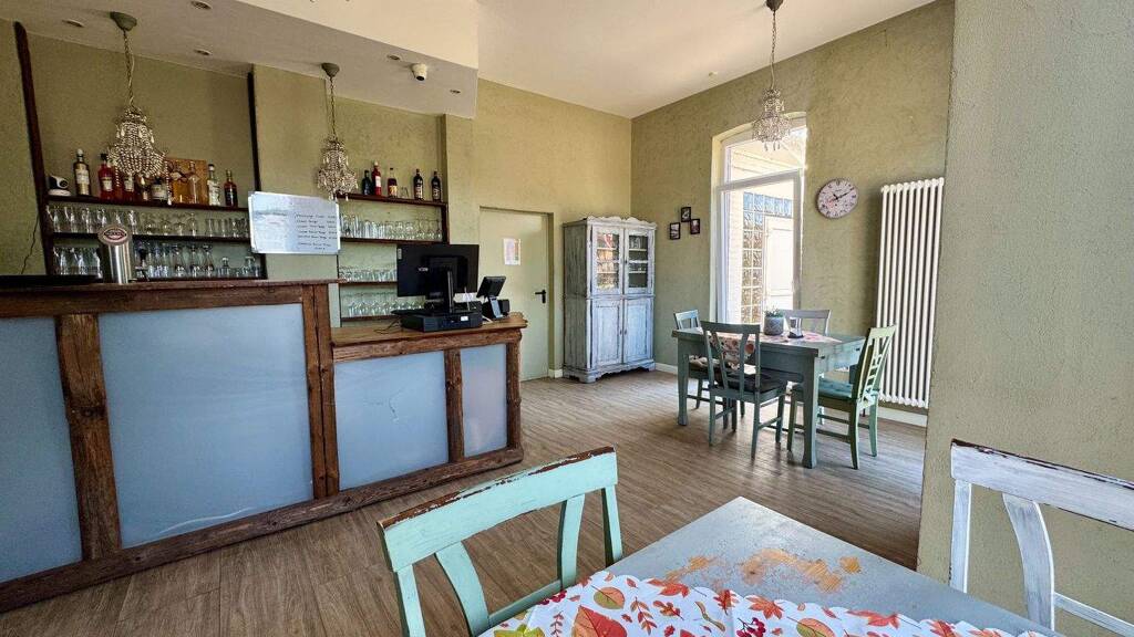 Im Erdgeschoss erstreckt sich die attraktive Gewerbefläche, die aktuell als Restaurant genutzt wird. Sie umfasst einen Gastraum mit einladender Theke, mehrere Sitzbereiche, eine große Küche sowie weitere Nebenräume. Zwei separate Gäste-WCs (Damen und Herren) stehen zur Verfügung: Das Damen-WC ist mit zwei Toiletten und einem Waschbecken ausgestattet, das Herren-WC verfügt über ein WC, zwei Urinale und ein Waschbecken. Zudem gibt es ein Mitarbeiter-WC. Die Theke im Eingangsbereich empfängt die Gäste herzlich und führt direkt in den gemütlichen Gastraum. Bei schönem Wetter können die Gäste auch im Außenbereich Platz nehmen.