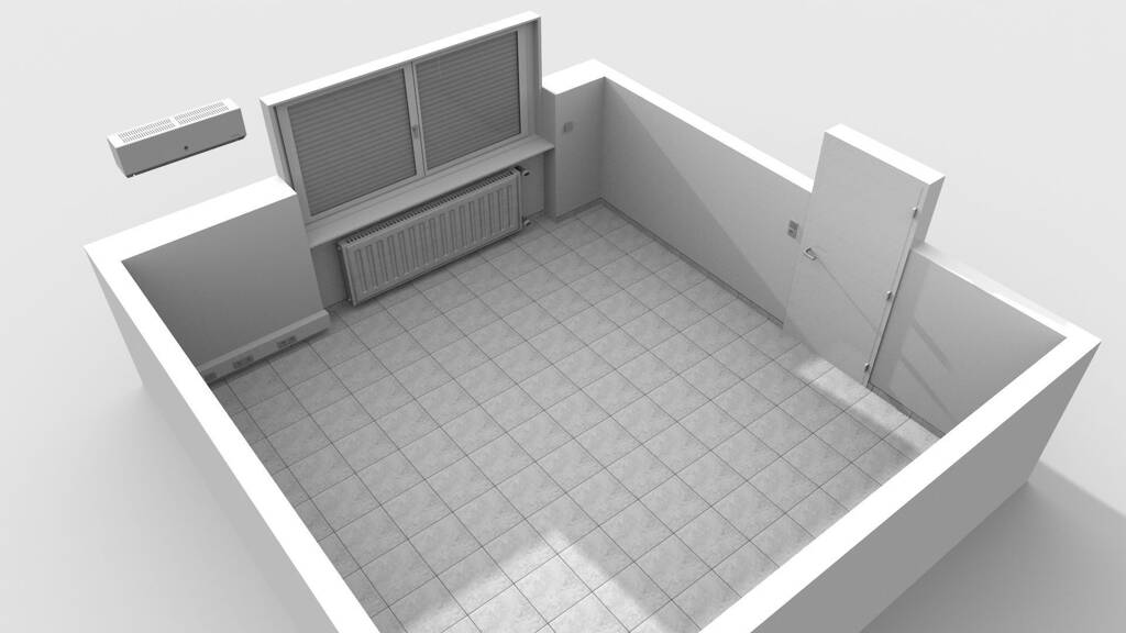 Der geflieste Raum mit einer Deckenhöhe von rd. 2,60 m liegt im Hochparterre eines gemischt genutzten Gewerbeobjektes. Durch ein großes Fenster fällt viel Tageslicht, es lässt sich aber auch durch einen elektrisch betriebenen Rollladen verschatten. Eine Klimaanlage sorgt im Sommer für angenehme Temperaturen.