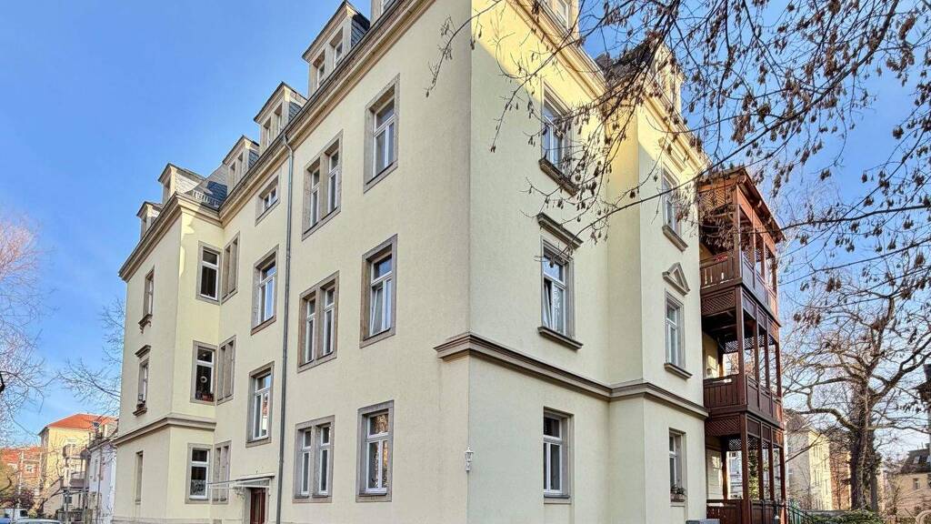 Zum Verkauf steht diese 4-Zimmer-Wohnung auf 2 Etagen eines vierstöckigen Mehrfamilienhauses mit historischer Altbausubstanz aus dem Jahr 1910. Die Generalsanierung erfolgte im Jahr 1999. Das denkmalgeschützte Gebäude befindet sich in bevorzugter Lage von Dresden-Striesen, inmitten einer hohen Dichte an zahlreichen alten Straßenbäumen, grünen Alleen und Parkanlagen.