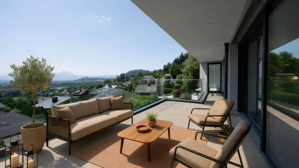Süd-West-Balkon/Terrasse, Anzahl der Schlafzimmer: 3, Anzahl der Badezimmer: 2, Anzahl der separaten WCs: 1, Anzahl Terrassen: 2, Balkon-Terrassen-Fläche: 64,14 m², Bundesland: Salzburg