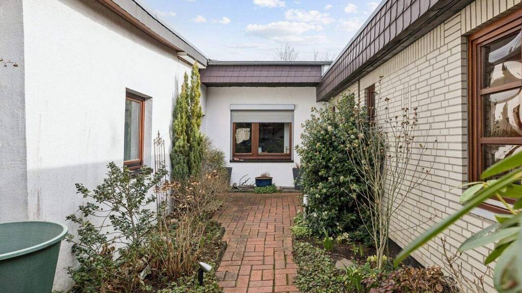 Besonders hervorzuheben ist der wunderbar eingewachsene Innenhof, der einen geschützten und sehr privaten Außenbereich schafft - ideal für entspannte Stunden im Freien. Zusätzlich stehen mehrere praktische Nebengebäude zur Verfügung. Ein Doppelcarport rundet das Angebot ab.