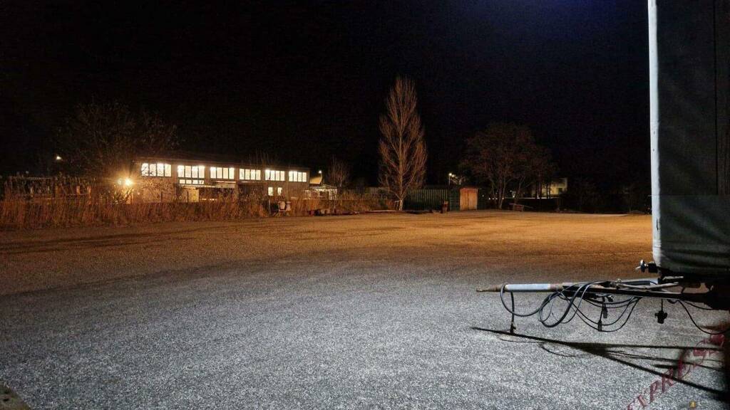 Die Freifläche ist komplett eben teils asphaltiert und der Rest für LKW Transporte befestigt. Es ist ein eingezäuntes beleuchtetes Gelände mit Videoüberwachung, Sattelschlepperzufahrt. Strom- Wasser- Druckluft optional. Gelände rundum eingezäunt mit elektrischem Tor und Zifferncode.
