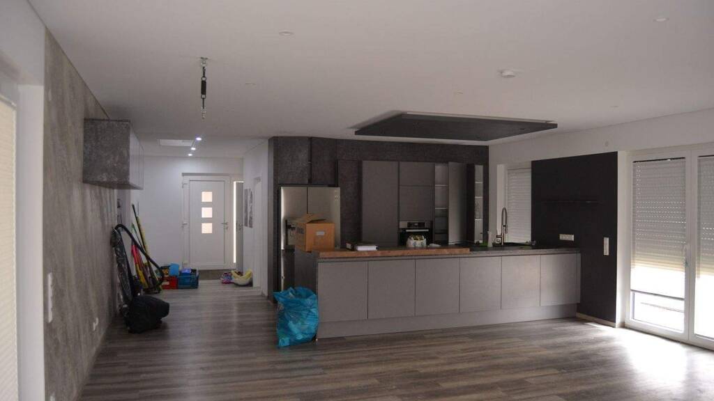 - Zusätzlich wurden im gesamten Haus Schattenfugen in den Decken eingearbeitet, was eine