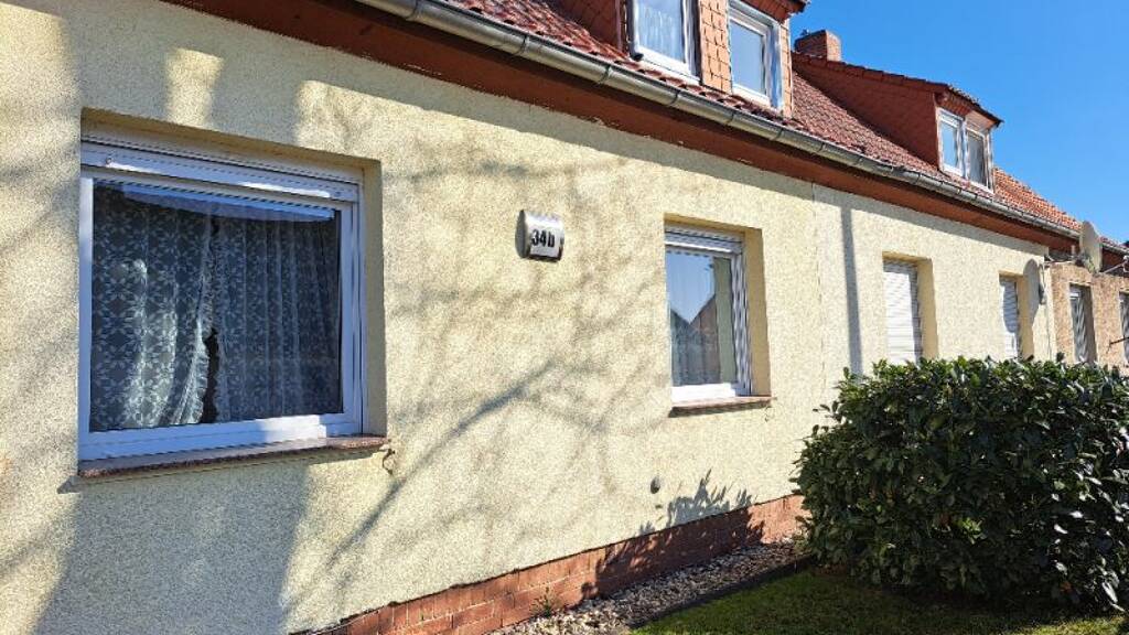 Das hier vorgestellte Reihenmittelhaus wurde 1934 in massiver Bauweise errichtet und fertiggestellt. Die Größe und Lage des Grundstücks weist ein Alleinstellungsmerkmal auf, für eine Reihenhaussiedlung ist das Grundstück sehr groß. Gebaut wurde zur Straße liegend, entsprechend wird das Grundstück optimal genutzt. Das Innere der Immobilie ist zweckmäßige. Der Dachboden ist noch nicht ausgebaut. Das Haus wurde 2006 saniert; das heißt das Dach, die Fenster mit Jalousien und die Heizung wurden ersetzt. Als Besonderheit kann man hier die zwei Heizsysteme nennen, es kann mit Gas oder mit Holz und Kohle geheizt werden. Weitere Nutzflächen bieten eine Stallung, der Keller, die Garage, und ein Gartenhaus. Erdgeschoss: - Diele, Küche, Schlafzimmer, Wohnzimmer, Duschbad Obergeschoss: - 1 Kinderzimmer - Dachboden / Ausbaureserve ca. 25 m² - Räucherkammer