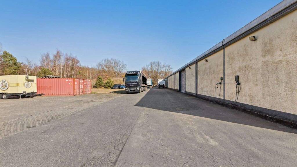 Zusätzlich verfügt das Grundstück über mehrere LKW- und PKW-Stellplätze sowie befestigte Freiflächen bzw. Rangierflächen.