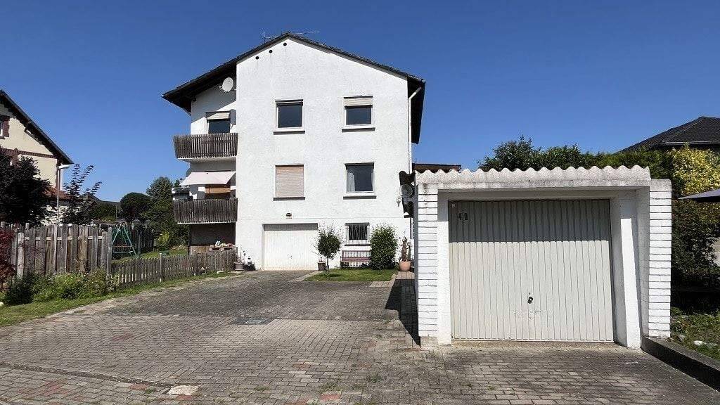 Hier können Sie die Vorzüge einer ruhigen Wohngegend genießen, ohne auf eine gute Anbindung an die umliegende Infrastruktur verzichten zu müssen. Insgesamt ist dieses Zweifamilienhaus (Doppelhaushälfte) aus dem Jahre 1960 ein sehr attraktives Angebot in einer sehr schönen Lage mit einem wunderbaren Weitblick. Die Gesamtwohnfläche von ca. 182 m² verteilt sich auf zwei abgeschlossene und fast grundrissgleiche Wohneinheiten. Die Wohnungen verfügen jeweils über ein Wohn-/Esszimmer mit Kaminanschluss, eine Küche, zwei Schlafzimmer, sowie ein Badezimmer mit Dusche und Badewanne. Vom Schlafzimmer ist jeweils ein Zugang auf den Balkon gegeben. Ein weiterer Balkon ist von der Küche im Obergeschoss begehbar. Im Kellergeschoss befinden sich neben den üblichen Heiz- und Kellerräumen eine integrierte Garage. Eine Terrasse und etwas Grünfläche auf dem Grundstück laden zum Entspannen und Genießen ein. Eine weitere Garage und PKW-Stellplätze befinden sich ebenfalls auf dem Grundstück.