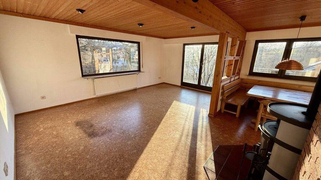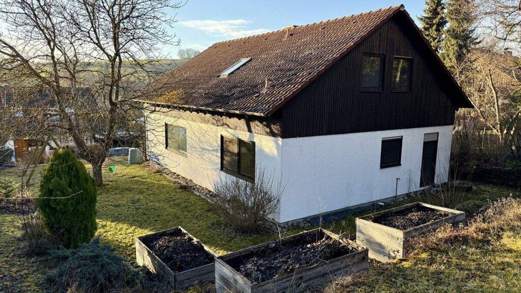 Das Haus wurde im Jahr 1983 von der "Fertighausfirma GEBA" in Holzständerbauweise erbaut. Es verfügt über eine Grundstücksgröße von ca. 723m² und befindet sich in Ortsrandlage. Das EFH bietet nicht nur reichlich Platz, sondern auch eine Vielzahl an Möglichkeiten, um den Traum vom perfekten Eigenheim zu verwirklichen. So steht Ihnen eine Wohnfläche von ca. 126 m² zur Verfügung, die sich über das EG (ca. 80m²) und das DG (ca. 47m²) verteilt. Im EG befindet sich der großzügige und helle Wohn-Essbereich mit einer offenen und neuen Küche, das Schlafzimmer, ein weiteres Zimmer, sowie das TL-Bad mit Dusche und WC. Das besondere Highlight dieser Immobilie ist ganz bestimmt die Südwest-Terrasse mit Zugang in den Garten, welcher um das komplette Haus angelegt ist. Im DG stehen Ihnen zwei weitere Zimmer, das Schlafzimmer mit Zugang auf den Westbalkon und ein weiteres Bad mit Wanne zur Verfügung. In einem Zimmer liegen die Anschlüsse für eine Küchenzeile, sodass hier sogar eine separate kleine Wohnung entstehen kann. Das UG bietet viel Platz, hier befinden sich zwei Kellerräume, die Waschküche und der Heizraum. Besonders erwähnenswert ist die große Doppelgarage mit direktem Zugang ins Haus.