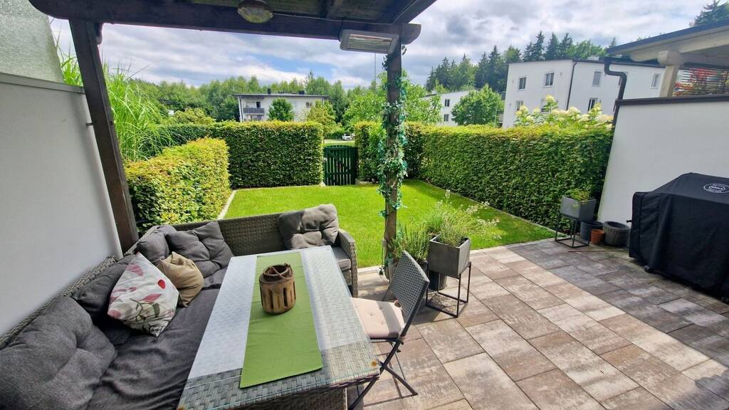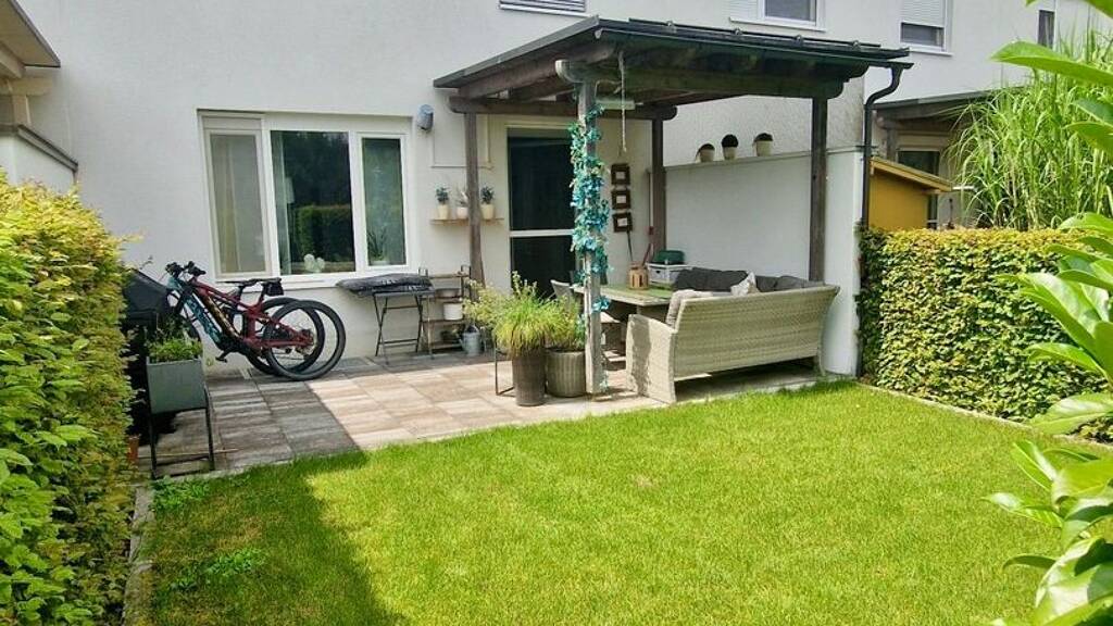 Am beliebten Vöcklabrucker Stadtrand in behüteter Mittelposition befindet sich dieses sehr gepflegte Reihenhaus (ca. 90 qm Fläche), das zusätzlich noch volle Unterkellerung bietet, wovon etwa 20 qm auf einen ausgebauten Gästewohnbereich/Homeoffice entfallen. Ursprünglich mit drei Schlafzimmern ausgestattet, wurden die beiden im Obergeschoß befindlichen Kinderzimmer zu einer lässigen TV-, Relax- und Lese-Galerie geöffnet. Bei Bedarf ist ein Rückbau der Galerie zu einem oder zwei Zimmern (ohne die Galerie komplett aufzugeben) selbst für Handwerkerlaien ein Kinderspiel. Der pflegeleichte (und tatsächlich sehr gepflegte) Garten kann sowohl vom Wohnbereich aus als auch von extern her betreten werden und wartet mit einer gemütlichen, gedeckten sowie beheizbaren Lounge-Ecke samt Grill und kleiner Rasenfläche (gesamt ca. 60 qm) auf, was den attraktiven Wohnbereich -vor allem zur wärmeren Jahreszeit- ebenso angenehm wie sinnvoll ergänzt. Zwei Parkplätze und der verbleibende Kellerbereich sorgen für bequemes Parken und Lagern beim bzw. im Haus, während überschaubare Betriebskosten das monatliche Budget schonen. Fazit: Gepflegtes Reihenhaus in beliebter Wohngegend - perfekt für Paare und Kleinfamilien. Sofort zu besichtigen und nach Absprache rasch beziehbar! HWB 93.