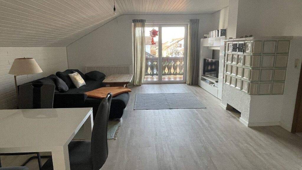 Grüß Gott und Herzlich Willkommen! Doppelhaushälfte einmal anders. In der Regel sind Haushälften durch die Mitte getrennt und jeder wohnt auf zwei Ebenen. In diesem Falle ist die Trennung quer erfolgt. Sie haben einen eigenen Eingang an der Seite mit Gartenanteil und überdachter Terrasse. Der Unterschied liegt darin, dass Ihr Wohnbereich erst im Dachgeschoss anfängt, d.h. im Erdgeschoss haben Sie einen großen Flur - die perfekte Garderobe. Von hier führt Sie die schöne Marmortreppe in Ihre neues Zuhause. Als Lebensmittelpunkt erwartet Sie das gemütliche Wohn-/Esszimmer mit Kachelofen (hat bereits einen neuen Einsatz) und Zugang auf den Balkon. In den Wintermonaten übernimmt der Kachelofen fast die komplette Beheizung. Die Nachtspeicheröfen wurden alle erneuert und werden überwiegend nur bei Abwesenheit genutzt.