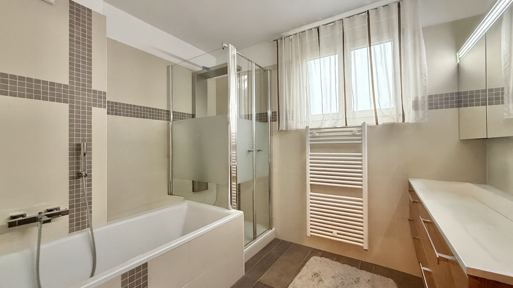 Bad mit Dusche und Wanne.