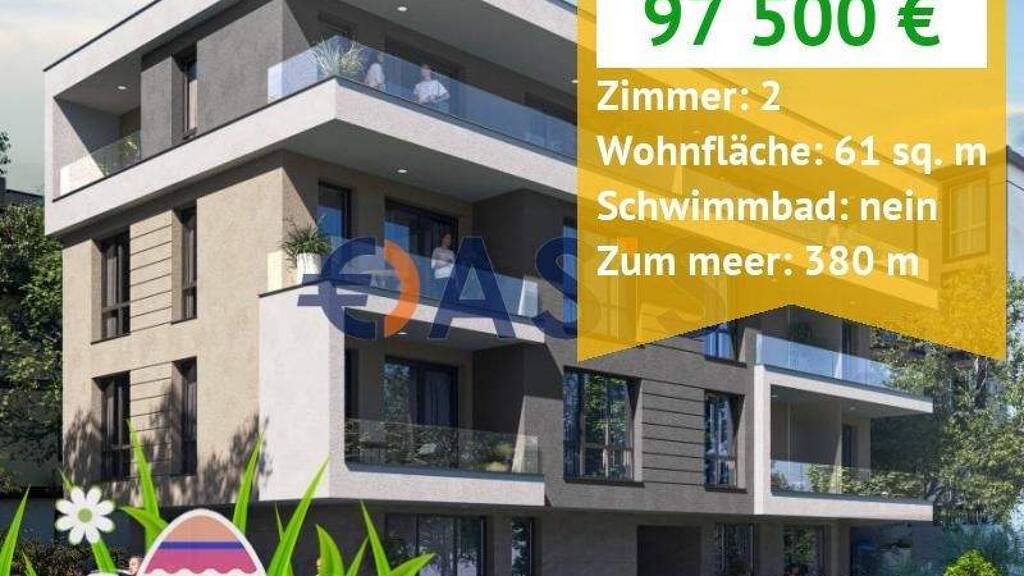 Apartment mit 1 Schlafzimmer in einem neuen Luxus-Wohnhaus in Fairview Saint Vlas, Bulgarien, 60,95 qm, Preis 97 500 Euro #33736