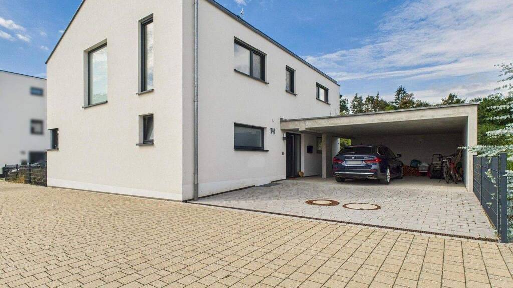Massiv gemauertes Einfamilienhaus mit WU-Keller im KfW-55 Standard mit gehobener Ausstattung auf großem Grundstück (811qm) in unverbaubarer Waldrandlage. Komplett angelegter Garten, Sichtbetoncarport für 2 Autos mit Wallbox. Energieeffizienzklasse A mit Photovoltaik+Speicher, Solarthermie, Fußbodenheizung (auch im Keller), Regenwasserzisterne und Kaminofen.