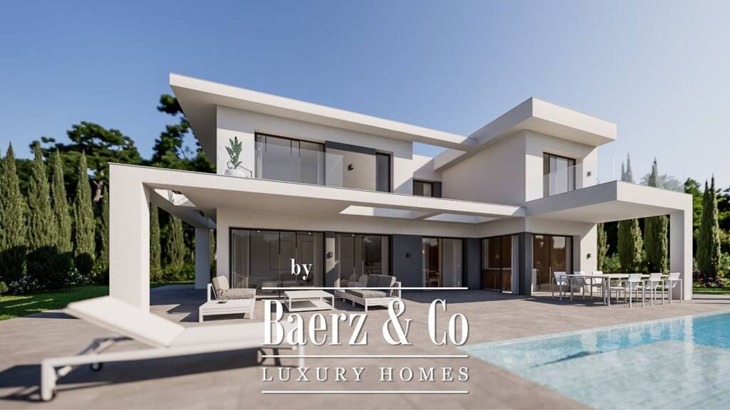 every corner is bathed in natural light, perfectly connecting the interior spaces with the lush garden and impressive swimming pool. the property is complete with a garage for two cars and prioritises comfort and security.