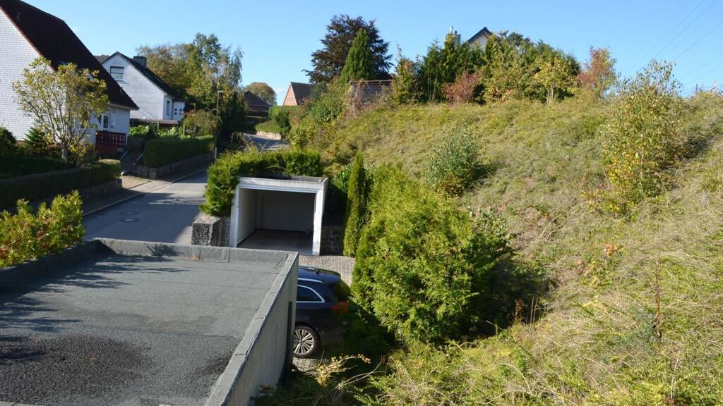 - vorhandener Altbestand: zwei Garagen (Bj. 2011), Stützmauer