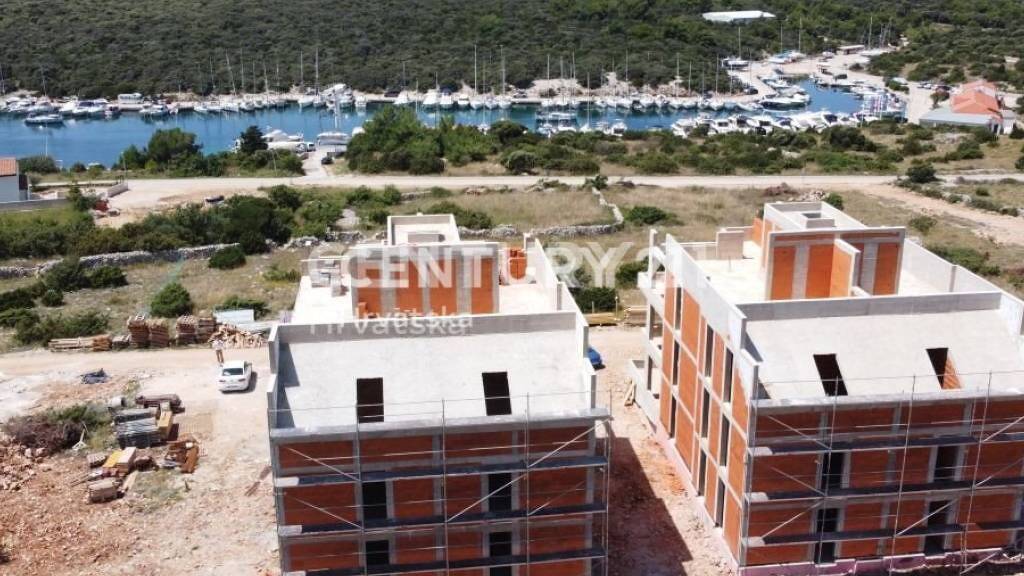 Two bedroom apartments for sale in a new building in Simuni on the island of Pag, near the marina with a sea view. The project is currently under construction, the expected completion of the works is in the winter of 2025.
