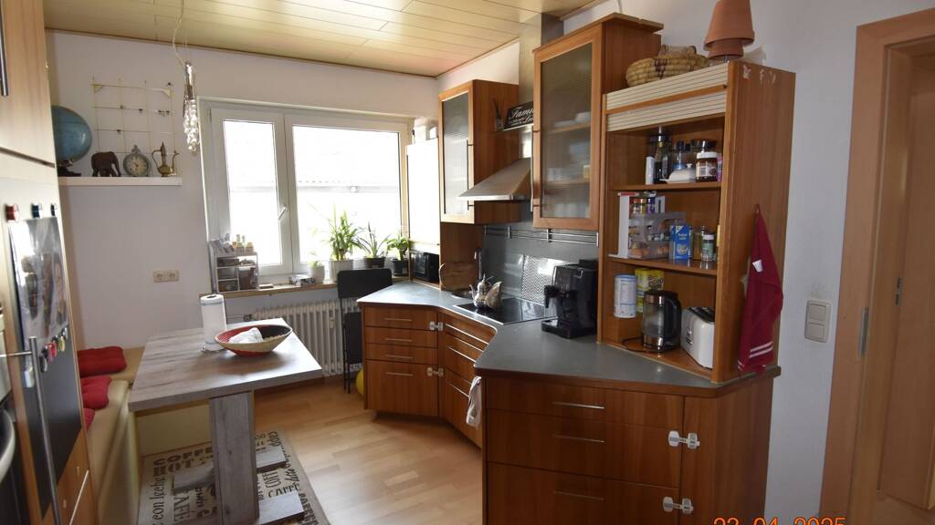 Das Herzstück der Wohnung ist die vom Schreiner gefertigte Küche, die zwar nicht mehr ganz neu ist, aber durch ihre hochwertige Verarbeitung und Funktionalität überzeugt. Die hellen, gut geschnittenen Räume bieten viel Platz zum Wohlfühlen und sind optimal aufgeteilt.