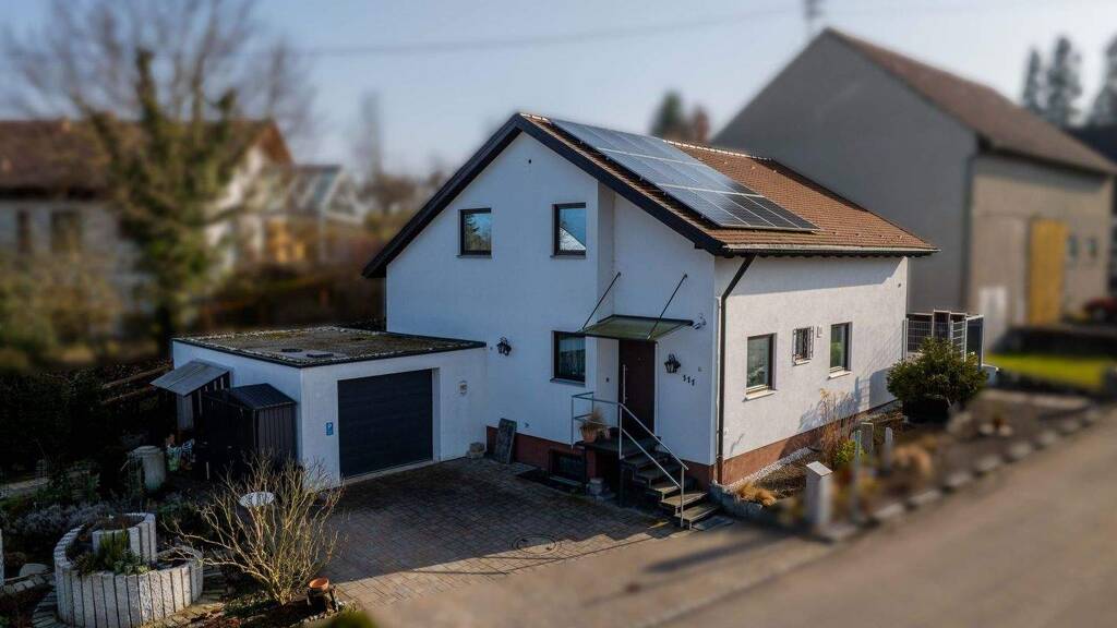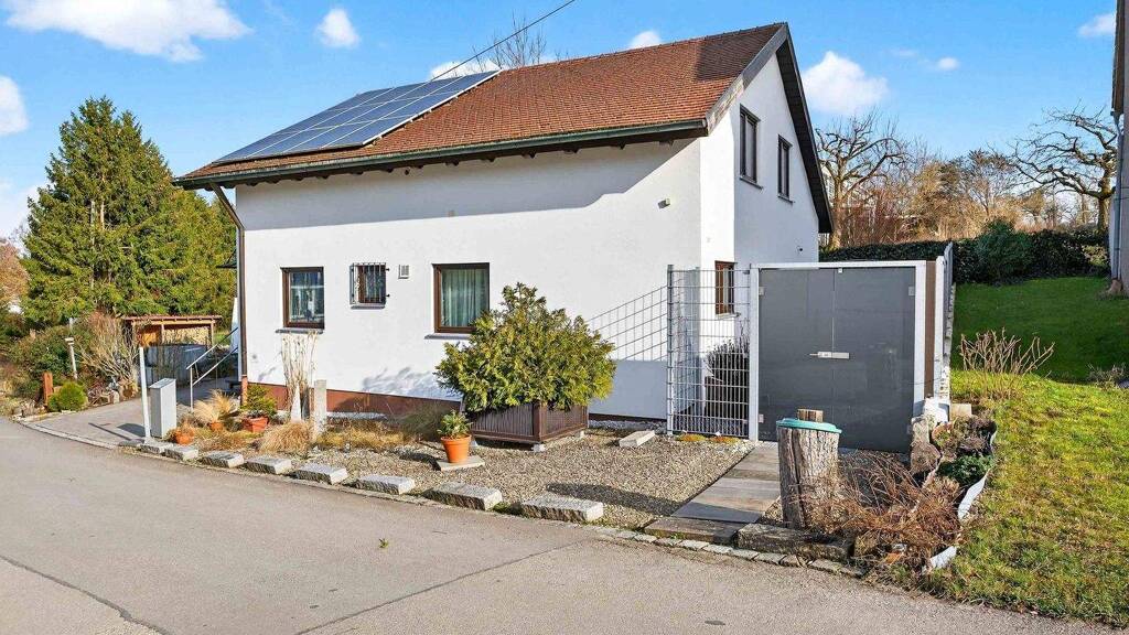 Technisch überzeugt die Immobilie mit einer Photovoltaikanlage (6,6 kWp) inklusive Stromspeicher, dreifach verglasten Fenstern, einer Ölzentralheizung (2017) mit unterstützender Wärmepumpe zur Warmwasserbereitung sowie einer Zisterne zur Regenwassernutzung. Eine Einzelgarage sowie zwei Stellplätze auf der davorliegenden Zufahrt runden das Angebot ab.