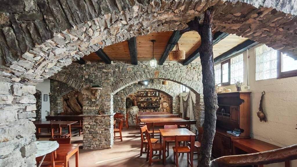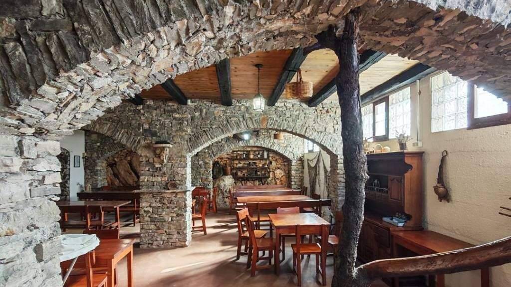 The rustic stone building, featuring authentic Mediterranean architectural elements (stone arches, wooden beams, traditional details), provides a strong identity and market appeal.