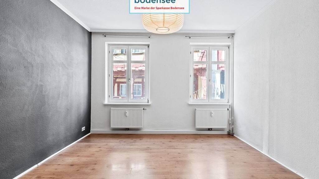 Im 1. Obergeschoss eine 3-Zimmerwohnung mit ca. 85 m² Wohnfläche, diese ist leerstehend. Diese Wohnung verfügt über eine großzügige Terrasse nach Süden- von dort haben Sie Blick auf die Burg Meersburg.