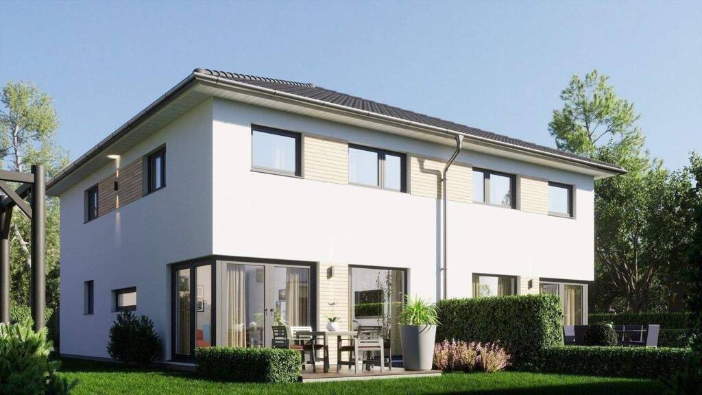Auf einem ruhigen, ca. 810 m² großen Grundstück in unmittelbarer Nähe zum Ortszentrum von Sasel entstehen 2 exklusive Doppelhaushälften als moderne Stadthäuser mit gut durchdachten Grundrissen.