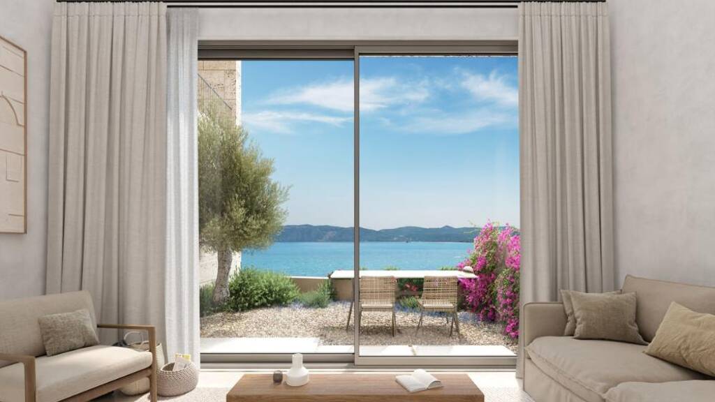 Kreta, Kissamos: Neubau-Projekt! Elegante Wohnung am Meer mit unverbautem Blick auf die Ägäis zu verkaufen