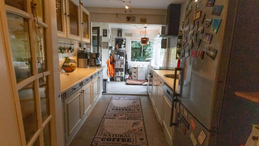 Abgerundet wird das Erdgeschoss durch den hellen Wintergarten, der 2021 einen neuen Boden erhalten hat. Für besonders angenehme Wärme sorgt hier der Pelletofen.