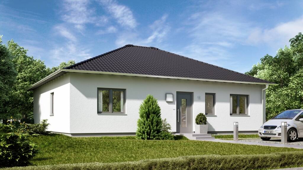 Barrierefrei präsentiert sich dieser 100 qm große Bungalow und beeindruckt durch eine optimale Raumaufteilung. Dabei garantieren bodentiefe Fenster helle und freundliche Räume. Die attraktive Wohnküche ist offen gestaltet und hat direkten Anschluss an den großzügig geschnittenen Wohn- und Essbereich. Dies macht die Wege sehr kurz und angenehm. Die überdachte Terrasse ist über einen bequemen Zugang erreichbar und bietet den idealen Ort um den Garten zu genießen. Da weder Treppen noch Stufen den Bewegungsfluss stören, fühlt man sich im ganzen Haus besonders wohl und sicher.