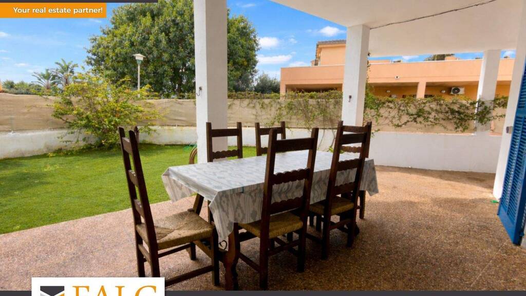 Besonders hervorzuheben ist der Außenbereich: Eine große Terrasse mit mehreren Sitzgelegenheiten lädt zum Entspannen und Verweilen ein. Der kleine Garten mit Kunstrasen ist pflegeleicht und wird durch einen Zitronenbaum charmant ergänzt - ideal für mediterranes Wohngefühl.