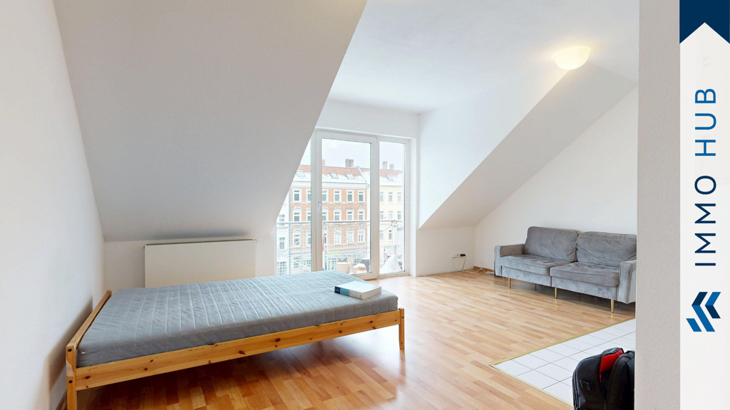 Die kompakt geschnittene Wohnung bietet auf rund 31 m² eine klare und funktionale Raumaufteilung. Der kombinierte Wohn-, Schlaf- und Küchenbereich bildet das Herzstück der Einheit und wirkt mit französischem Austritt angenehm offen und hell. Hier entsteht ein stimmiger Lebensmittelpunkt, der sich gut an unterschiedliche Wohnbedürfnisse anpassen lässt. Die Dachschrägen mit Kniestock prägen den Charakter der Wohnung und verleihen dem Raum eine eigene, wohnliche Atmosphäre, ohne die Nutzbarkeit wesentlich einzuschränken.