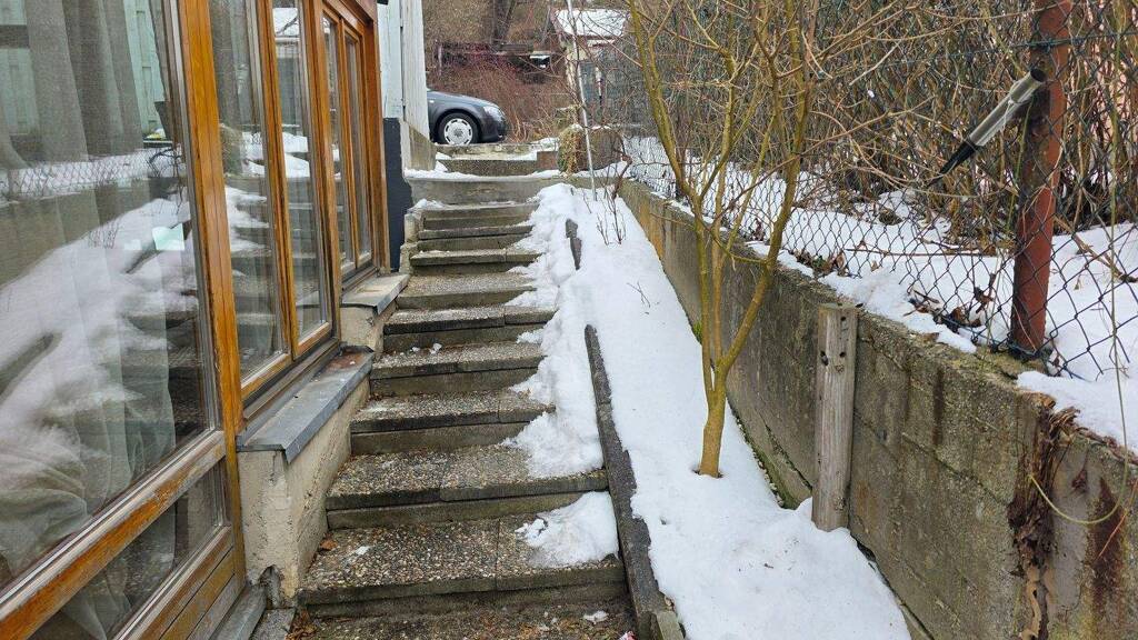 Außenbereich: Zum Haus gehört ebenfalls der Zugangsbereich über die Treppen, der Teil des Grundstücks ist und sich optisch sehr ansprechend gestalten lässt. Die Außenfassade befindet sich in einem guten Zustand, könnte jedoch bei Bedarf einen neuen Anstrich erhalten; dies ist aktuell nicht dringend erforderlich.