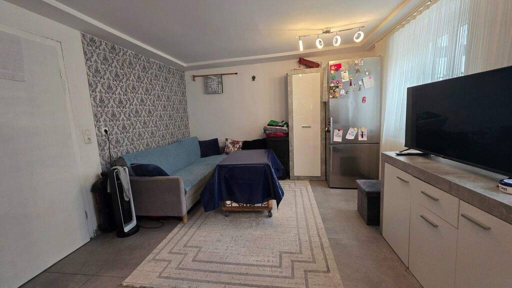 1. Obergeschoss: Im ersten Stock befinden sich das Wohnzimmer, ein Schlafzimmer sowie ein separates Gäste-WC. Diese Ebene eignet sich ideal als Wohn- und Rückzugsbereich.