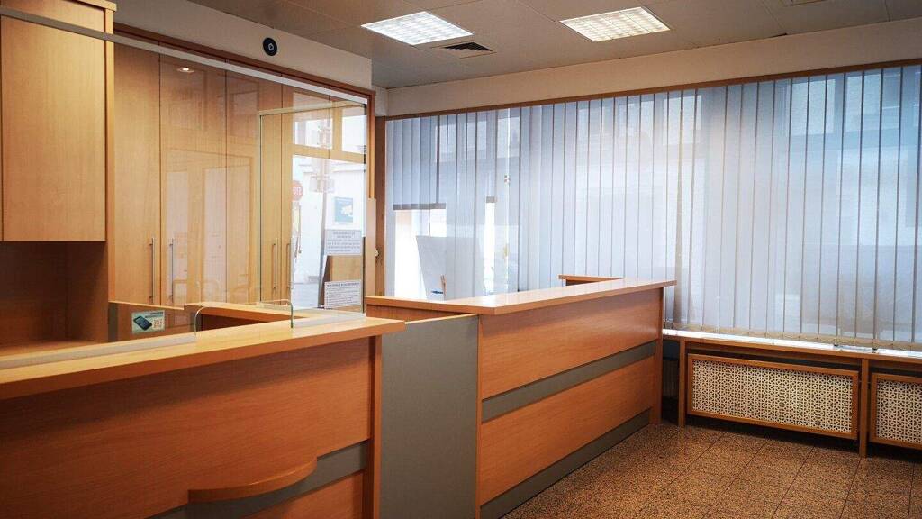 Der vordere Bereich (Verkaufs- / Geschäftsraum) bietet die Möglichkeit einer gepflegten, klassischen Büro-Möblage (optional), welche durch ihre Maßanfertigung und viel Stauraum punktet.