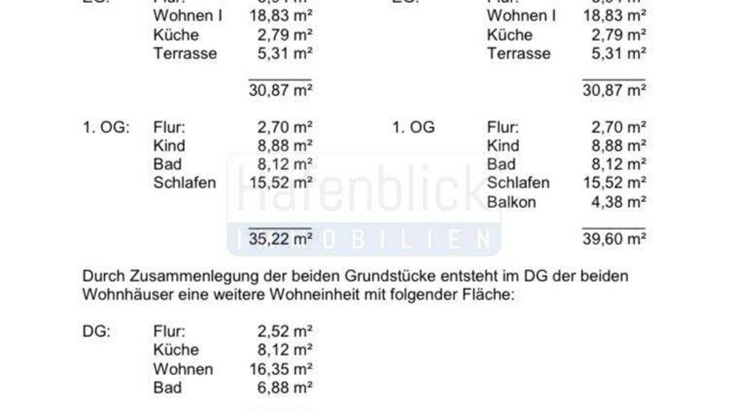 Die Gesamtwohnfläche für beide Häuser beträgt 170,43qm.