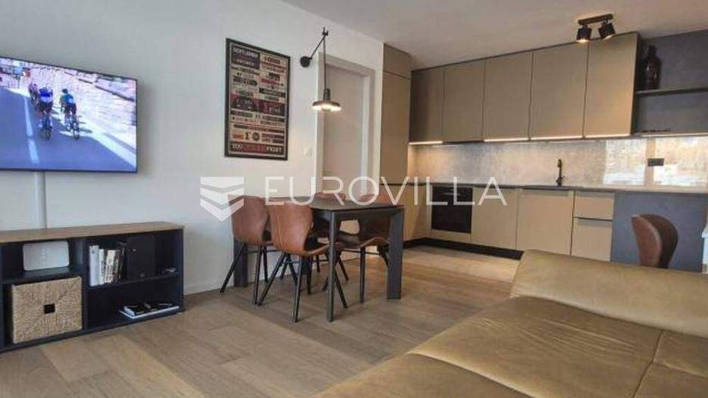 Split, Znjan - moderan dizajnerski dvosoban stan s garaznim mjestom dostupan za najam do srpnja 2026. godine.Stan se nalazi u novoj zgradi na 4. katu i zapadne je orijentacije. Povrsine 63 m2 stan se sastoji od hodnika, dvije kupaonice, dvije spavace sobe i otvorenog koncepta kuhinje, blagovaonice i dnevnog boravka s izlazom na balkon. Stanu pripada i jedno garazno parkirno mjesto povezano liftom.Stan je opremljen modernim i kvalitetnim namjestajem i aparatima (Bosch perilica suda, pecnica, indukcijska ploca, frizider, napa), te se nalazi u blizini svih sadrzaja potrebnih za miran zivot. U kuhinji i kupaonicama je ugradeno podno grijanje na struju. U stanu su ugradene dvije klima jedinice za grijanje/hladenje te stropni ventilator.Perilica/susilica u kupaonici, te elektricni bojler kao i opticki internet.Rezije nisu ukljucene u cijenu.Vise informacija na upit.... Vise na eurovilla.hr, ID: 907024