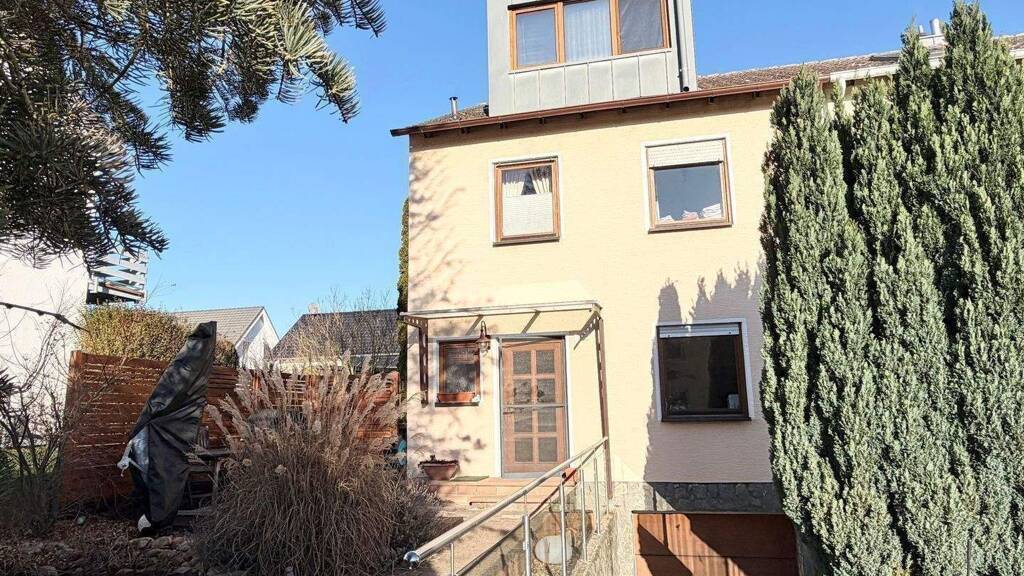 Dieses Einfamilienhaus begeistert, denn mit seinen 5 Zimmern ist es optimal für die Familie geeignet. Das Haus bietet hier Ruhe und Sonne im Überfluss. Betreten Sie nun Ihr neues Zuhause, wird Ihnen gleich der gepflegte Zustand auffallen. Von der Aufteilung her bietet Ihnen das Haus im Erdgeschoss einen geräumigen Eingangsbereich, auf dessen linker Seite sich das Gäste-WC befindet. Auf der rechten Seite kommen Sie in einen Ess Küchenbereich, in dem Sie zusammen mit Ihrer Familie kochen und gemütlich beisammen sitzen können. Die Küche ist eine angefertigte Nolte-Einbauküche welche 7 Jahre jung ist und einen Neupreis von € 27.000.- hatte. Die Küche kann gegen einen Abstand von € 5.500.- vom Eigentümer übernommen werden. Weiterhin befindet sich im Erdgeschoss noch ein großer Wohnbereich mit davorliegendem Terrassenbereich und dem sich anschließenden Garten. Der Kaminofen im Flur verbleibt im Haus und bietet Ihnen wohlige Wärme im Winter. Gehen Sie zurück in den Eingangsbereich und die Treppe nach oben, kommen Sie in das 1. Obergeschoss. Hier befinden sich drei vollwertige Zimmer, welche als Schlafzimmer oder Kinderzimmer genutzt werden können sowie ein modernes Tageslichtbad. Das Schlafzimmer hat einen davorliegenden Balkon. Ein Geschoss weiter oben befindet sich das Dachgeschoss (ohne Dachschrägen durch die große Gaube) mit einem weiteren Schlafzimmer und einem großen Tageslichtbad, welches mit seiner Eckbadewanne zum relaxen einlädt. Das Dachgeschoss gibt auch noch einer Ankleide ihren Platz sowie zwei Abstellräumen. Das Dachgeschoss ist klimatisiert. Gehen Sie nun wieder zurück nach unten in das Erdgeschoss und die Treppe weiter in das Untergeschoss. Hier befindet sich eine Sauna, zwei Abstellräume, der Heizungsraum und die Garage, welche sich im Haus befindet. Das 314qm große Grundstück ist der passende Rahmen für das Haus, hier können Ihre Kinder in Ruhe spielen und Sie nach einem Arbeitstag die Sonne genießen und relaxen. Ihre Autos finden auf den 2-PKW Stellplätzen im vorderen Grundstücksbereich und einer Garage im Haus ihren Platz.