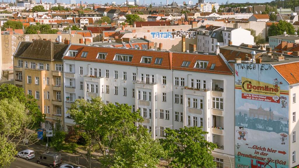 Der klassische Altbau in der Osloer Straße ist ein Wohn- und Geschäftshaus mit 26 Wohn- und 3 Gewerbeeinheiten aus dem Jahre 1910. In Vorderhaus und Seitenflügel verteilen sich auf vier Etagen großzügig geschnittene 1- bis 5-Zimmerwohnungen von 43 bis 163 m². Derzeit wird das Dach um weitere 377 m² ausgebaut. Die Fassade ist im Herbst 2018 mit einem hellen, ansprechenden Farbkonzept versehen und die straßenseitigen Balkone sowie die Doppelkastenfenster aus Holz sind überarbeitet worden.