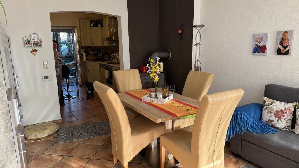 Im Erdgeschoss befindet sich ein großzügiger Wohn-Essbereich, die Küche, ein Duschbad sowie ein Abstellraum, welcher auch die Heizung beherbergt.