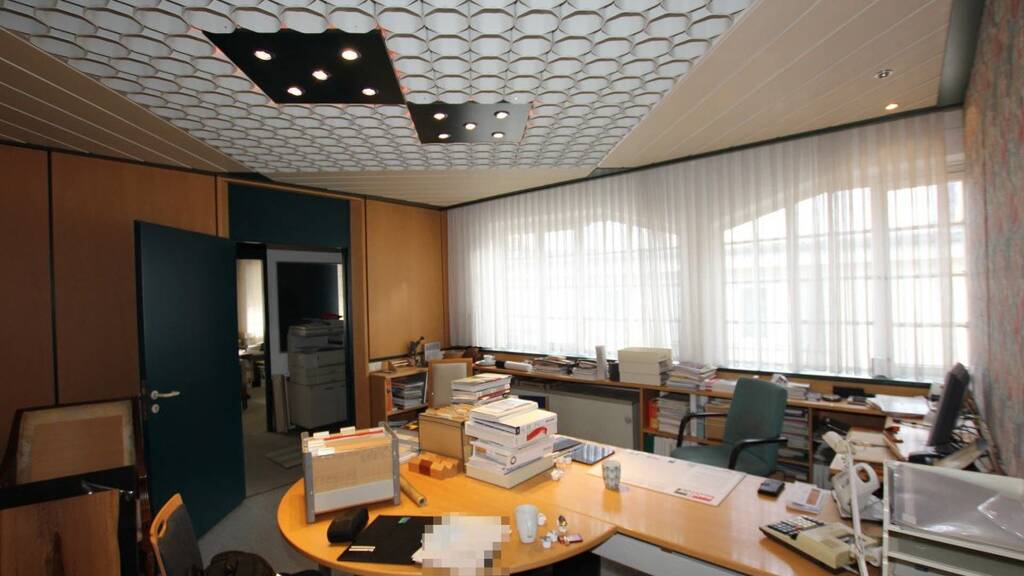 Produktionshalle 1 (vordere Fassade unter Denkmalschutz /Bj: ca.1938): Ist eine zweigeschossige Produktions-, Ausstellungs- und Lagerhalle mit ca. 1.663 m² Nutzfläche. Sie besteht aus 2 Produktionsräumen, 2 Lagerräumen, 1 Ausstellungsraum, 1 Aufenthaltsraum, 1 Kompressorraum, 3 Büroräume und ein WC.