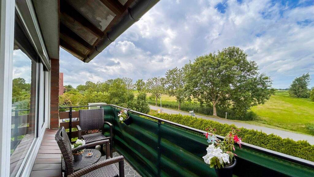 Separater AuĂźenzugang & sonniger Balkon mit Weitblick ĂĽber das Rheiderland