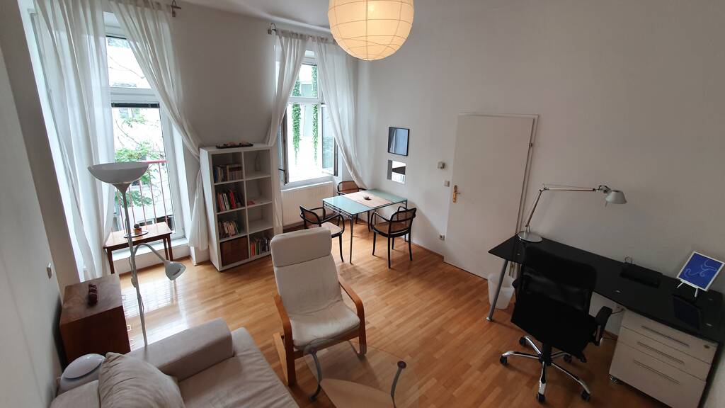 Allgemeine Informationen: - Ruhige, südwestseitige, helle Wohnung für max. 2 Personen, - Ca. 43 m2 mit idealer Raumaufteilung, viel Stauraum (Einbauschrank und Abstellraum) und Parkettboden - Gelegen im 2. Stock (Lift) eines Altbaus mit Blick in einen grünen Innenhof. - Attraktive Gegend mit guter Nahversorgung und Verkehrsanbindung (U4, 12A, 13A, 14A, 59A jeweils keine 300m entfernt) - In der Nähe des beliebten Naschmarkts sowie der Einkaufsmeile Mariahilfer Straße, ca. 10-15 Minuten zu Fuß in die Innenstadt.