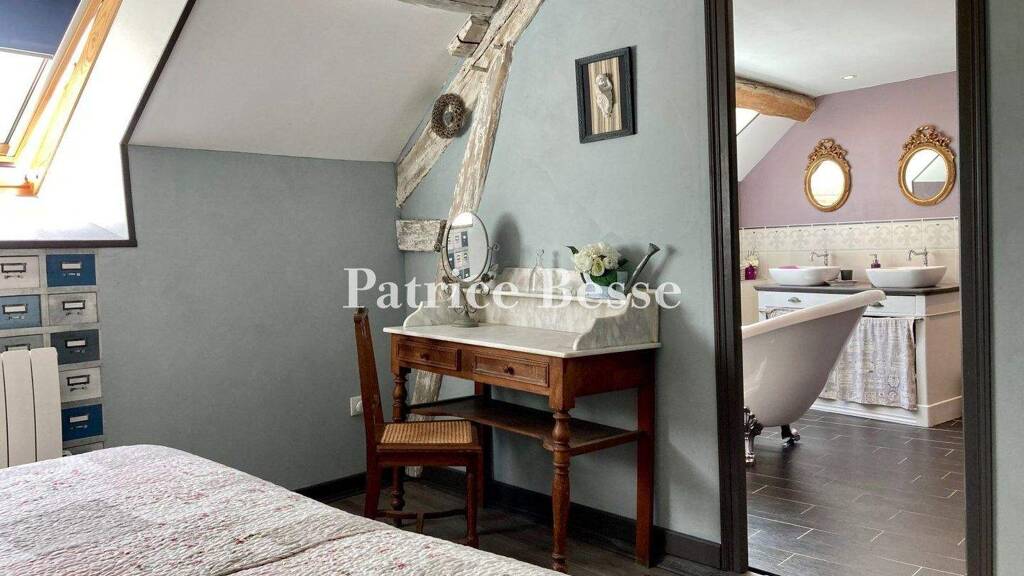 The residenceIt is most likely a former farmhouse built in the 17th century, with pointed rubble stone elevations beneath a roof made of interlocking tiles punctuated with skylights. The double-glazed windows mostly have wooden frames and ashlar surrounds.
