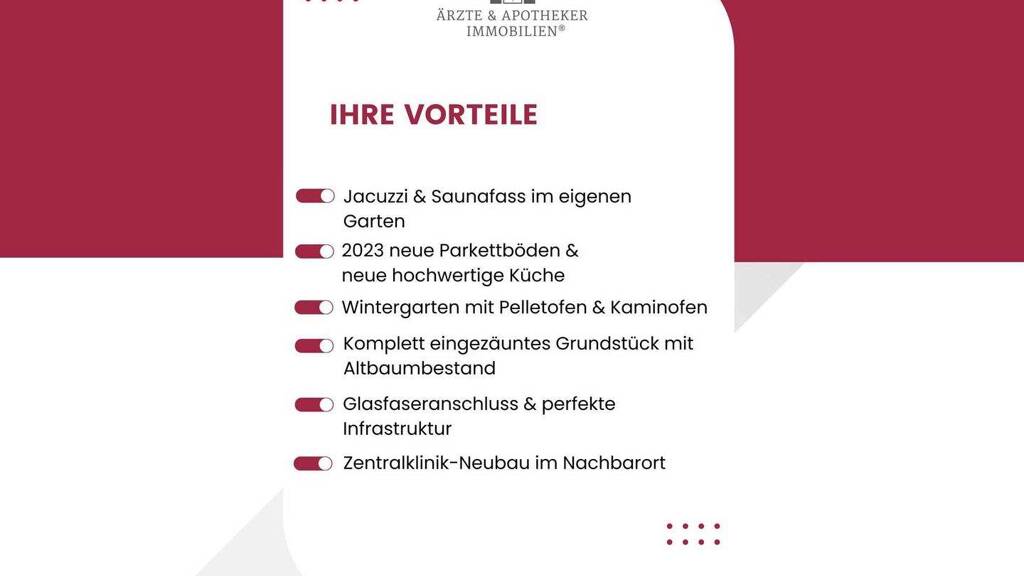 Neue Parkettböden im Erdgeschoss, zwei Kaminöfen, moderne technische Ausstattung wie Glasfaser und SAT-Anlage sowie die ruhige Lage in einer gewachsenen Siedlung mit sehr guter Infrastruktur machen dieses Haus zu einem Ort, an dem man sich sofort willkommen fühlt und gerne bleibt.