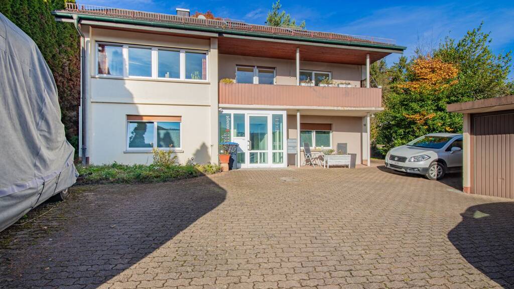 Der Außenbereich überzeugt mit einem geschützten Freisitz, einem überdachten Sitzplatz und einer gepflegten Rasenfläche - ideal zum Entspannen oder für gesellige Stunden im Freien. Drei Garagen sowie mehrere Außenstellplätze bieten reichlich Platz für Fahrzeuge, Hobby oder Lagerflächen.